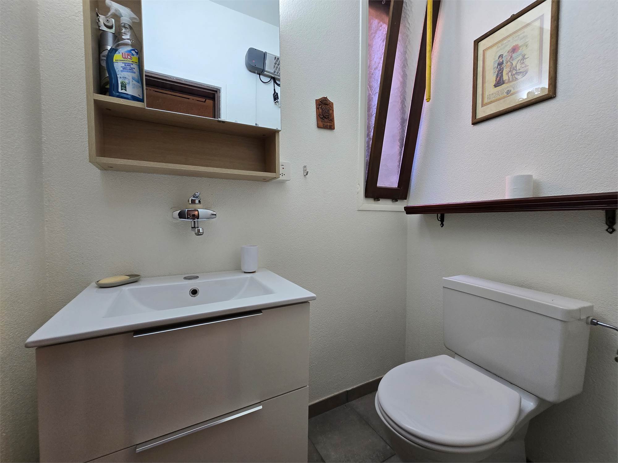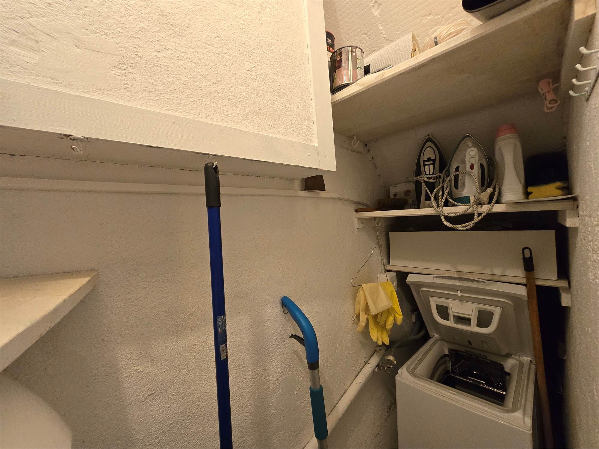 Piano terra: soggiorno con camino (elettrico con ventola / riscaldante), cucinotto a vista, pratico ripostiglio con lavatrice.