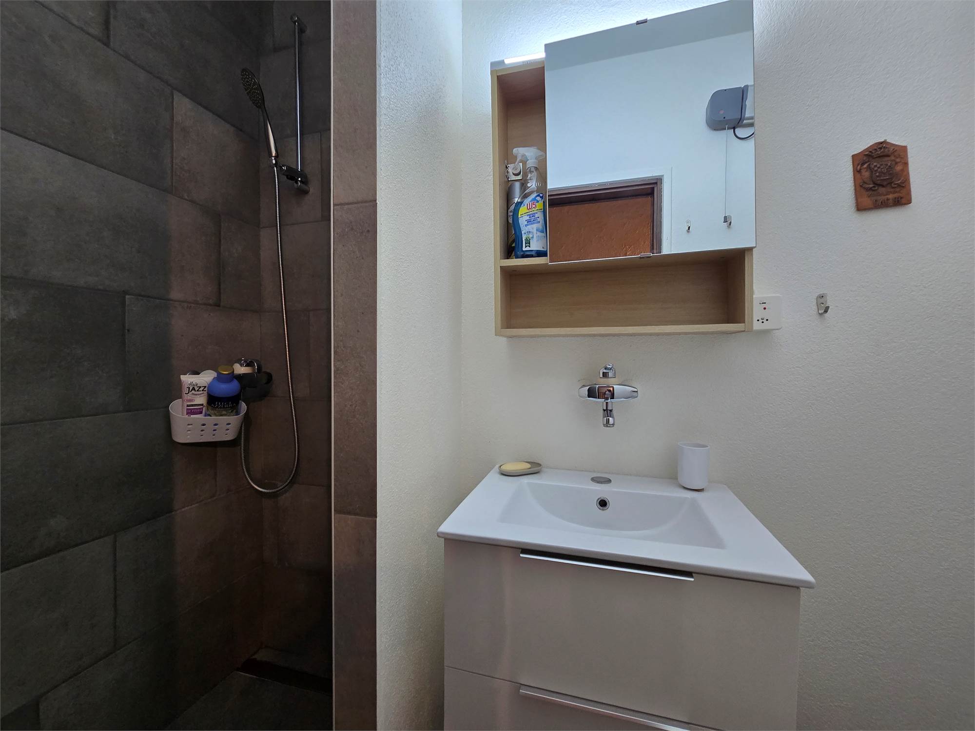 Primo piano: camera matrimoniale e bagno finestrato con doccia.